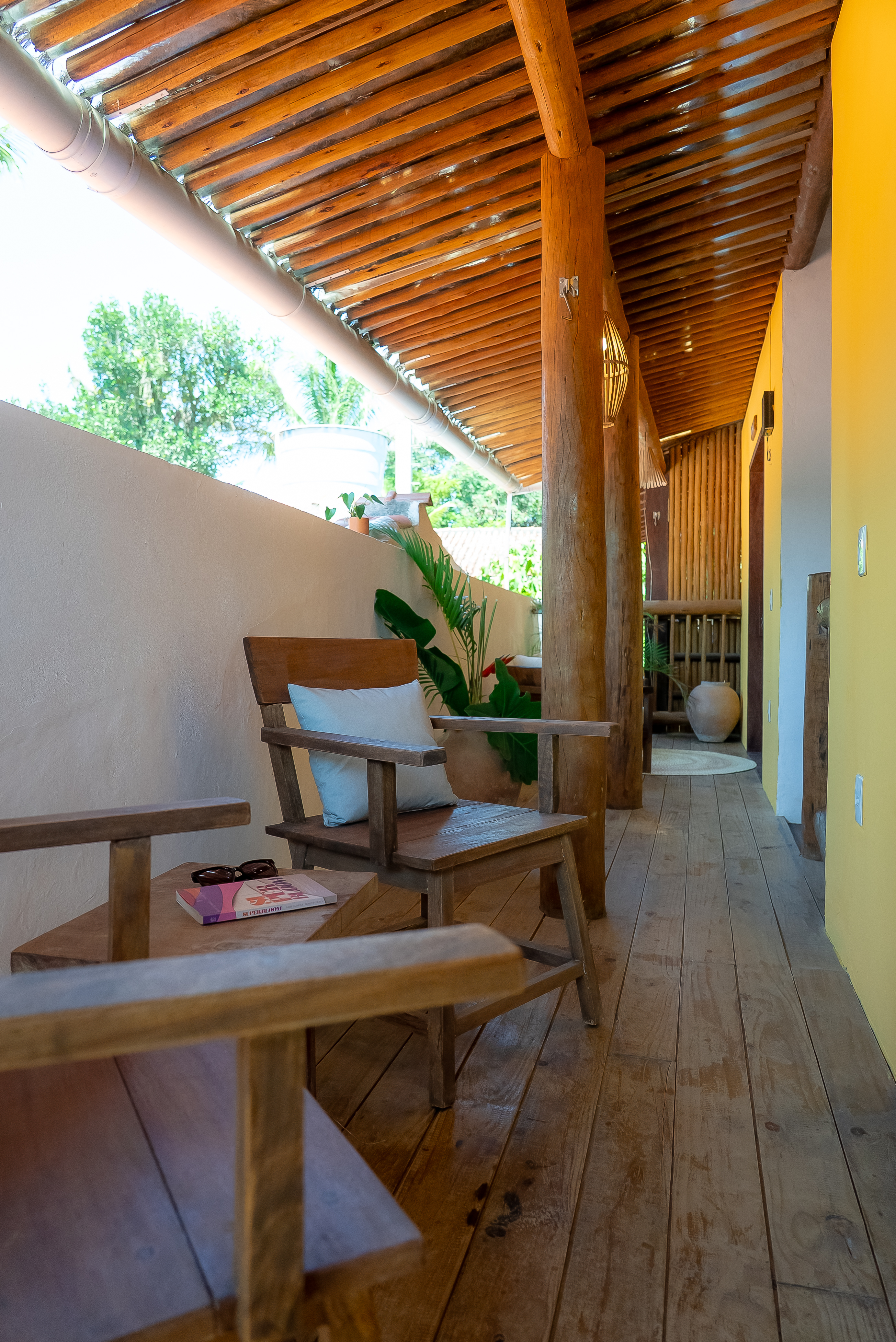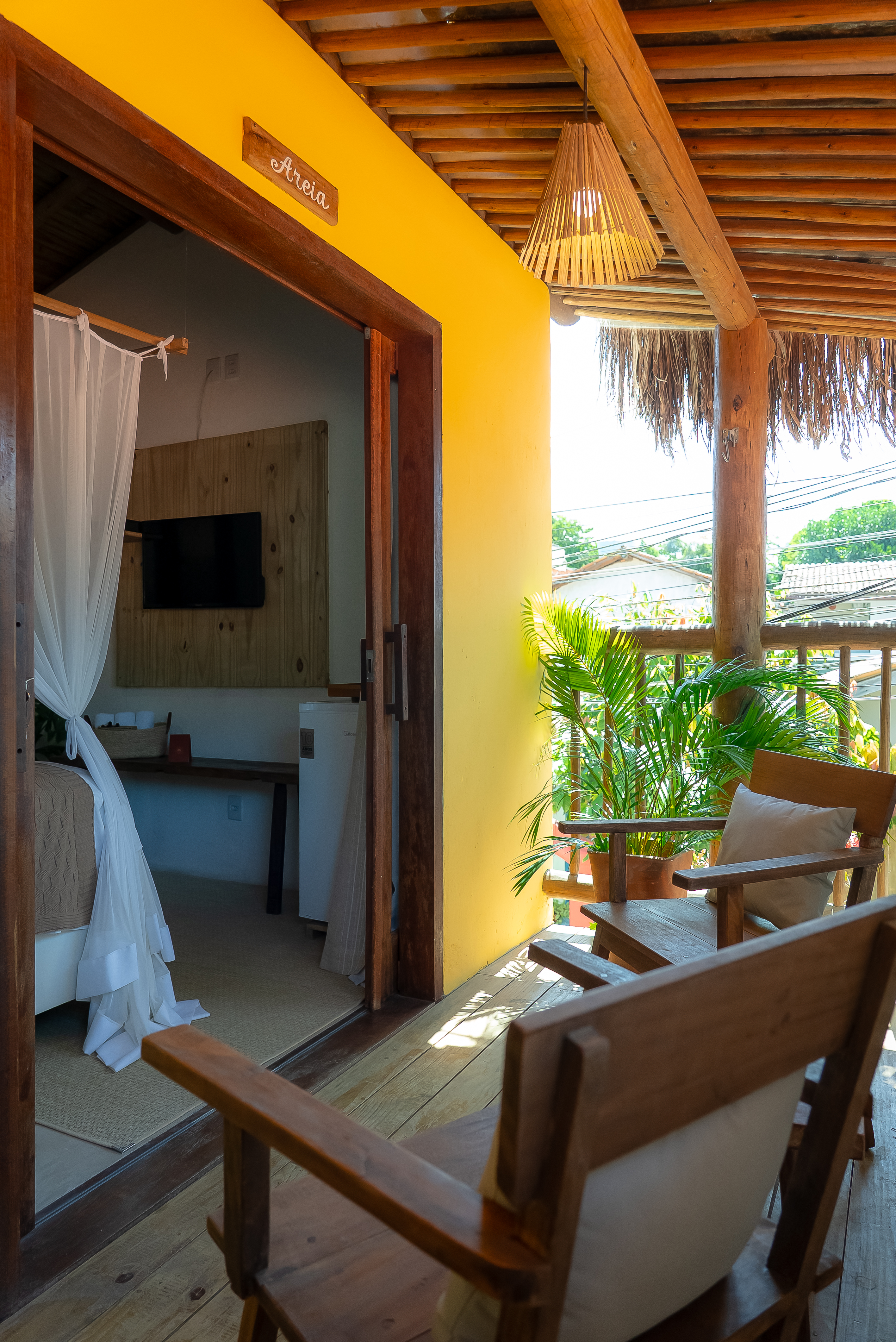 Detalhes & Diferenciais: 1 cama Queen varanda privativa estilo lounge, podendo por rede, decoração inspirada em elementos naturais e artesanato local, ar-condicionado, frigobar, enxoval completo e roupas de cama macias.